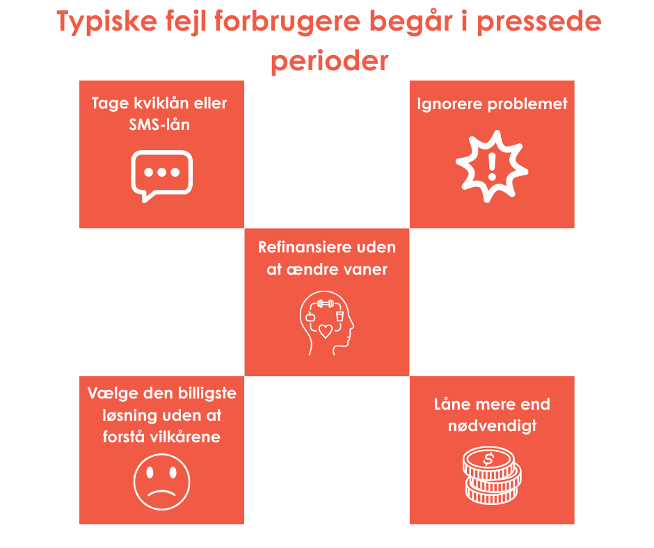 Når økonomien er presset, er det let at træffe beslutninger i panik. Beslutninger, der kan gøre situationen værre. Her er de mest almindelige fejl, vi ser: